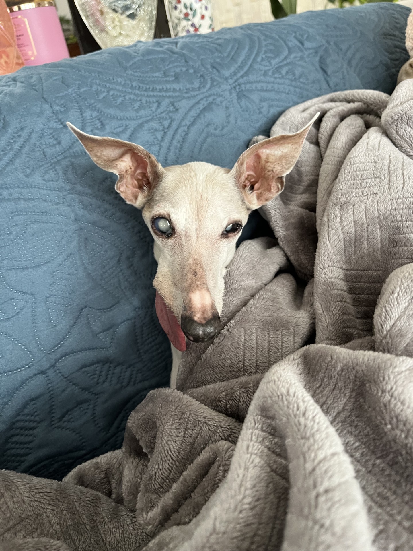 This picture was taken the morning we said goodbye. Our sweet Trixie crossed the rainbow bridge on October 27, 2025, just shy of 15 years old. She battled cancer and kidney failure with such strength and grace, but now she’s free from pain. Trixie filled our lives with so much love, joy, and comfort through every year we were blessed to have her. Her little paws left a forever imprint on our hearts. Run free, sweet girl — we love you always. 🌈🐾